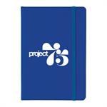 The Rainbow Notebook includes an 80 white ruled page notebook with an elastic closure and a matching color ribbon bookmark.